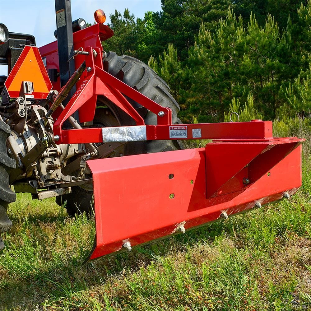 Grade your soils quickly with this 3-point grader blade. This grader blade is 5 foot long with an adjustable and reversible blade. This grader has a category 1 hitch.