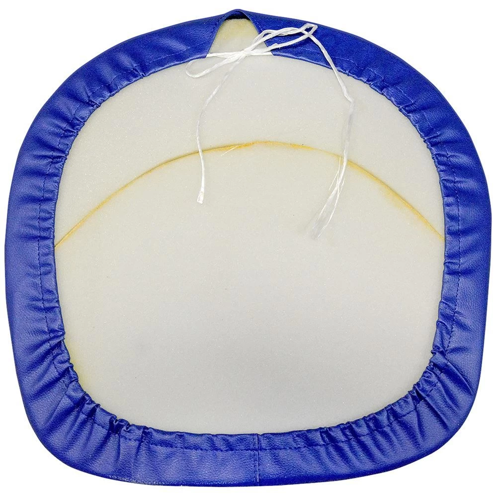 Made from waterproof leather, this blue replacement seat cover has dimensions of 19 inches x 19 inches. Slip on cover features an elastic bottom along with a string that can securely hold down the cover on your tractor.