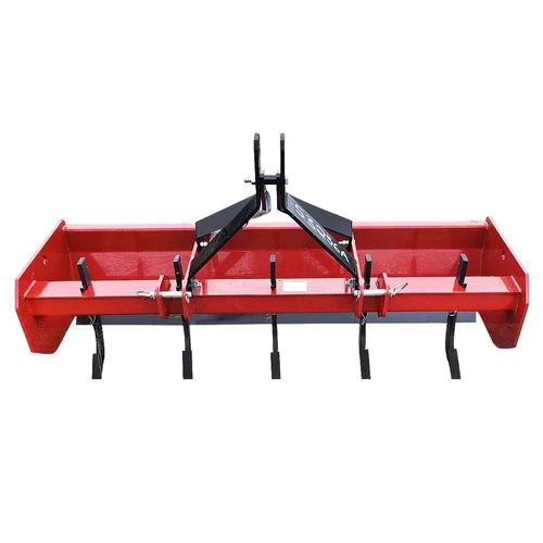 The box blade scraper is built to move soil and gravel. This 3-point attachment is constructed with heavy duty a-frame arms. The scraper has a 1/2 in. cutting edge so you get the benefit of soil cutting power.