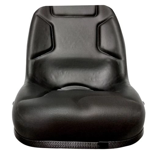 This compact tractor seat is constructed with a steel pan, heavy-duty black vinyl, and drain holes to hold up against normal wear and tear. The seat dimensions are 16.5″ high x 17″ wide x 21.5″ deep. This tractor seat is a drop-in fit for most Kubota tractor seats with the 6 bolt mounting patterns and can adjust to fit many more. Specifications are listed below.