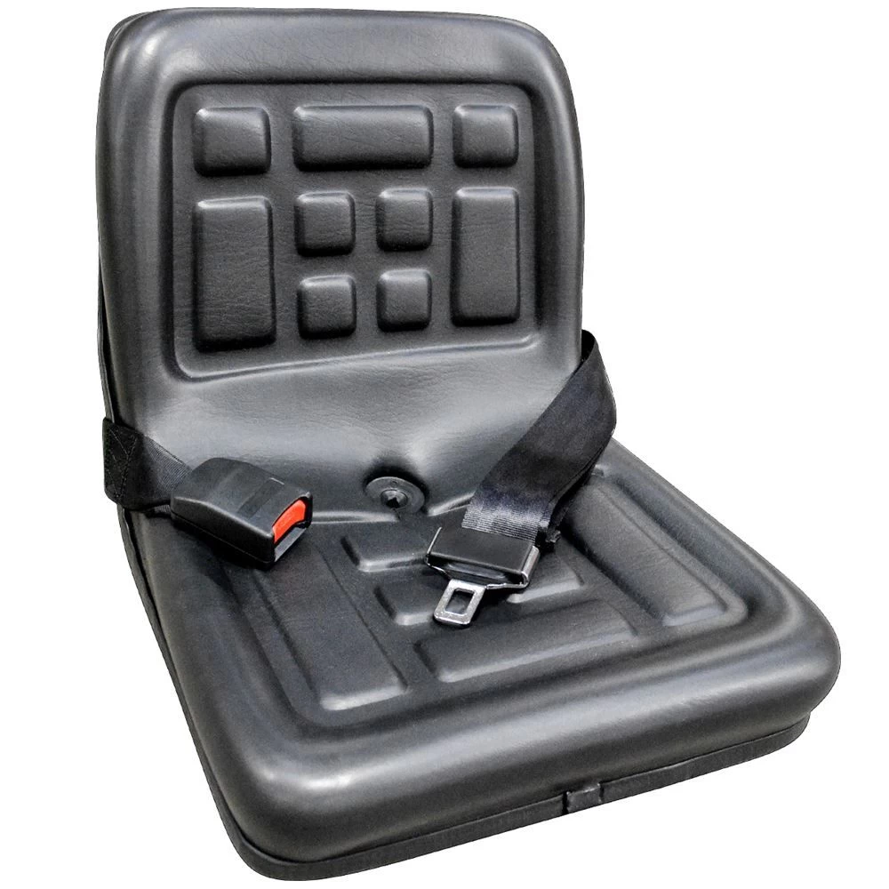 Waterproof and weather resistant, this universal tractor seat with flip type brackets comes ready to install on to a variety of tractor brands, including International Harvester, John Deere, and Kubota. Constructed with a high back, this one piece, compact pan style seat includes a drain hole to prevent mildew and sitting water when stored outside. The molded, high density foam is covered by a heavy duty PVC cover, creating a comfortable seat that will resist general wear and tear. Pre-drilled bolt patterns makes this seat versatile in applications, and the mounting hardware is included.