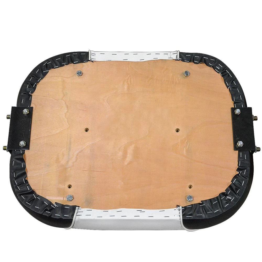To keep your tractor, windrower, or combine ride comfortable during long hours in the field, replace old and worn seat cushions that have began to slump and not provide proper support. This replacement seat, designed to fit International Harvester machines, is constructed out of high density foam that will hold up over time without issue. It sits in a wood pan, so it will not break under the weight and strain of constant use, and is covered in a black and white vinyl that is weatherproof against rain, wind, and other elements that may cause wear and tear.