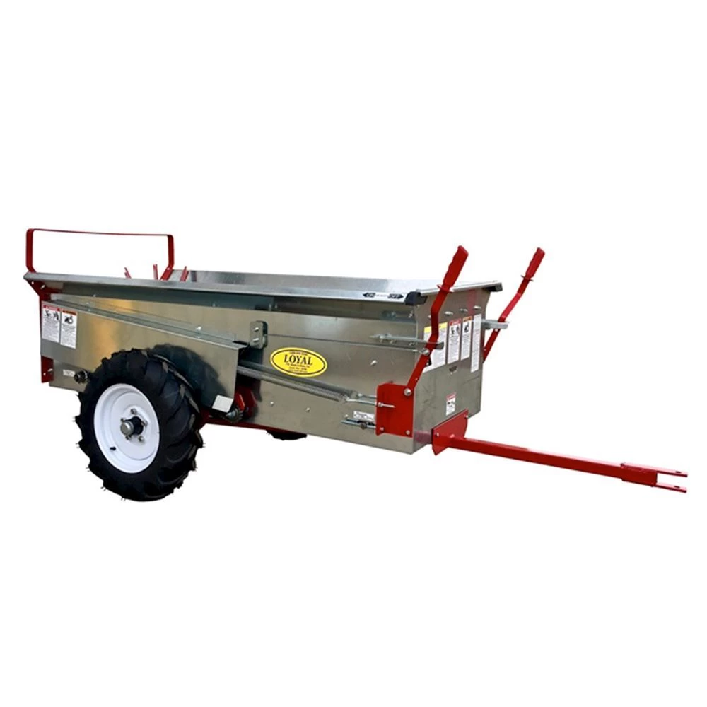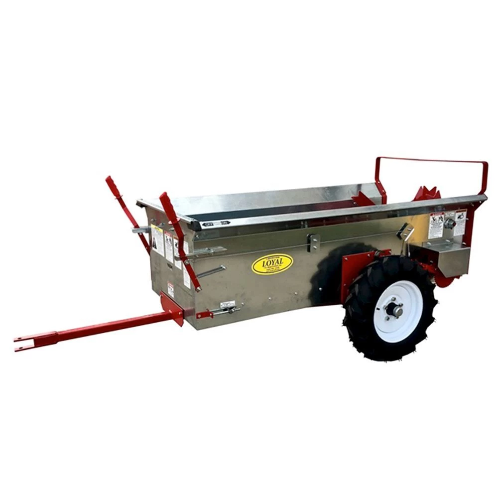 The T.R. Metalcrafters MS23B Manure Spreader is designed to distribute all types of manure for use as organic fertilizer in gardens, fields or pastures. The clevis-type hitch allows the unit to be pulled by a tractor, ATV, or 10HP lawn tractor.