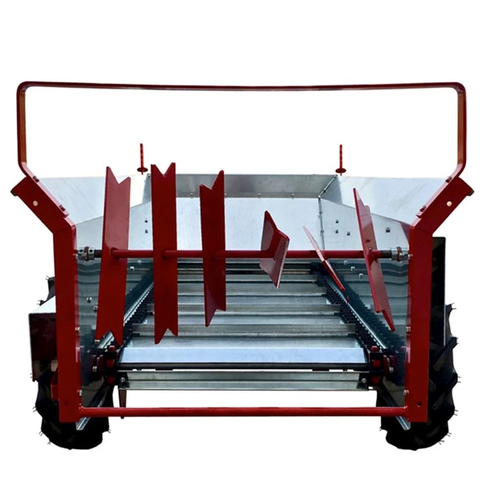- The apron chain is ratchet-driven by one wheel; beater is chain-driven by opposite wheel so there are no belts to slip.