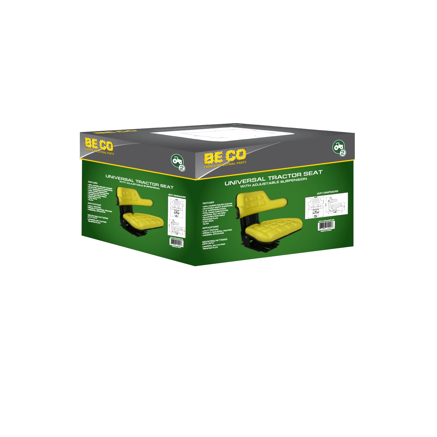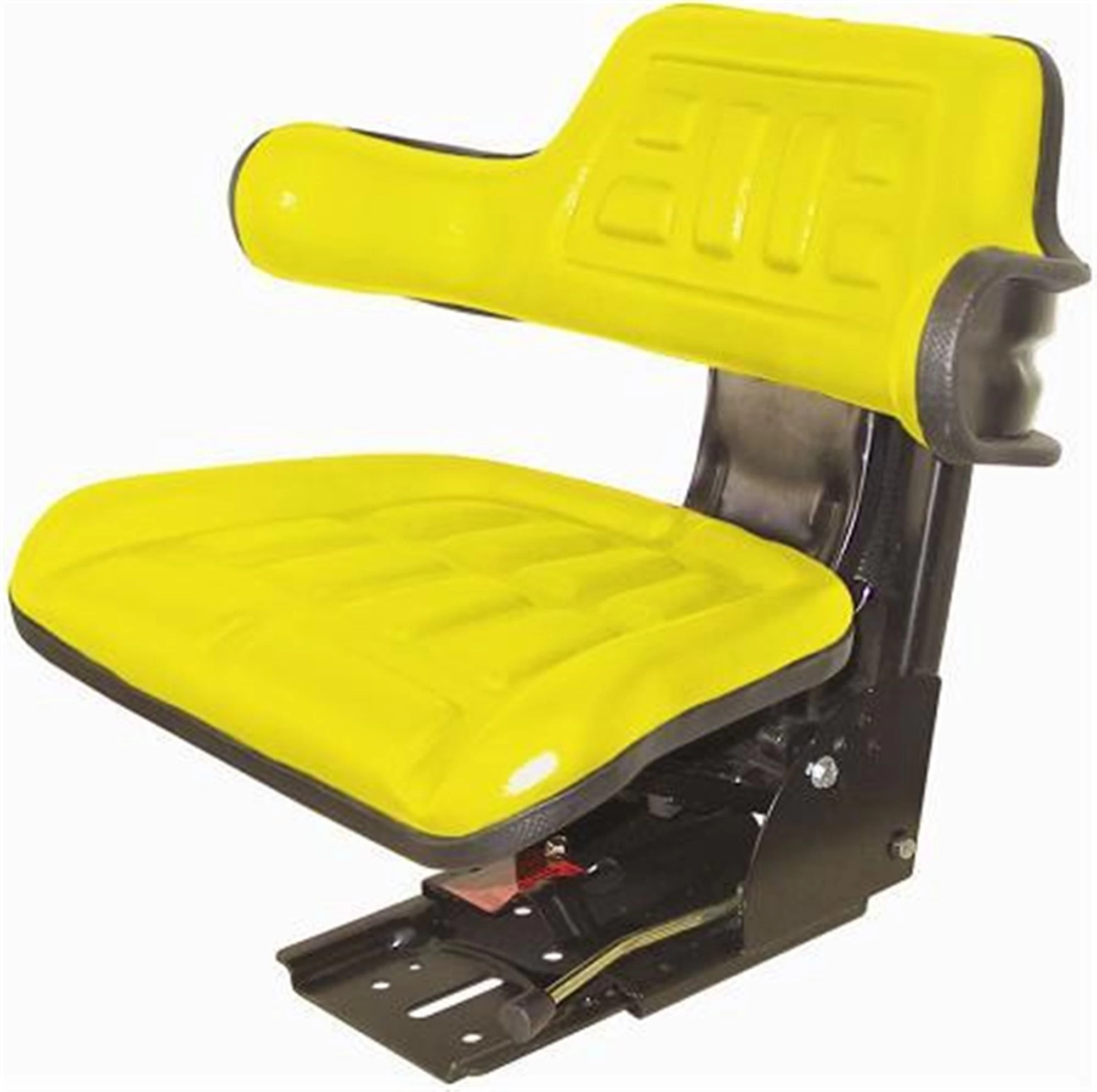 LEATHERETTE UPHOLSTRY, STEEL FRAME, MOLDED CUSHION, ADJUSTABLE WITH 5 MOUNTING ANGLES, FORE / AFT ADJUSTMENT, WEIGHT ADJUSTABLE SUSPENSION, SLIDE TRACK AND MOUNTING PLATE INCLUDED, YELLOW